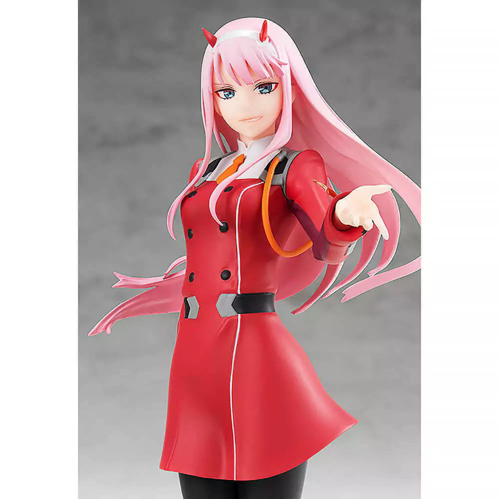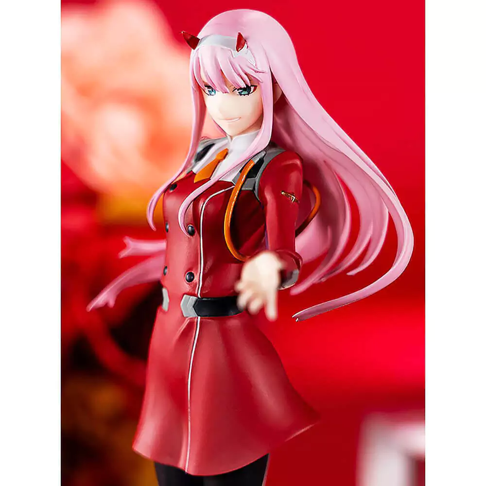 Com seus icônicos chifres e roupa de piloto, Zero Two é apresentada em uma pose elegante e dinâmica, pronta para ser a estrela de sua coleção. Perfeita para os fãs de Darling in The Franxx e colecionadores de figuras detalhadas!